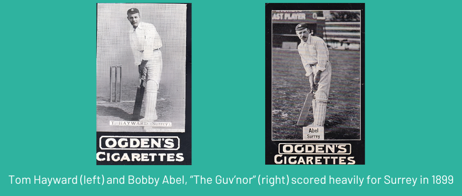 Images: Bobby Abel and Tom Hayward, both Ogdens 1901, George Hirst F&J Smith 1912. Banner image Wills 1929