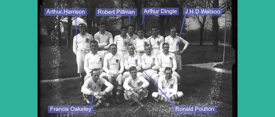 The banner image above shows the England team that played France on April 13th 1914, the last Five Nations match before the Great War in which six of its members would die. Only one, captain Ronald Poulton, played in all four of that year’s matches yet, as volunteer Peter Bloor recounts in Part One of our series for this Remembrance period, his selection was by no means a certainty until his triumphant performance in England’s opening match against Wales.
